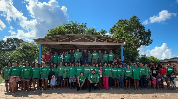 Nos dias 17 e 18 de junho, o Território Pacaás Novos foi palco de uma importante formação para coletores de sementes, com foco em boas práticas de coleta, armazenamento e segurança nas atividades de campo. Mais de 100 participantes das aldeias Santo André, Santo André 2, Oro At e Bom Futuro estiveram presentes, o que demonstrou o compromisso das comunidades indígenas com a conservação das florestas e a restauração ecológica.