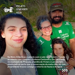 Na Mata Atlântica, a implementação de técnicas que regeneram o solo vem transformando a região do Sistema Cantareira. Quando Vivian e Luciano chegaram ao sítio localizado no município de Piracaia/SP, o riacho que desagua na represa do Jaguari quase desaparecia nos períodos de seca. O gado de outros proprietários pisoteava as mudas que tentavam crescer. Com o apoio do Projeto Semeando Água, o casal desenvolveu um Plano de Manejo Sustentável, que concilia a regeneração da floresta, com um Sistema Agroflorestal que une café, juçara e frutas nativas da Mata Atlântica.