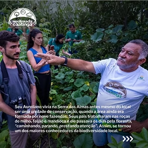 Na Caatinga, a apaixonante jornada de conservação e desenvolvimento sustentável do semiárido brasileiro é contada a partir da história de Seu Aureliano Rodrigues, o primeiro guarda-parque da Reserva Natural Serra das Almas (RNSA). Localizada entre os municípios de Crateús (CE) e Buriti dos Montes (PI), a Unidade de Conservação (UC) conta com 6.285 hectares e resguarda quatro nascentes, além de ser lar para centenas de animais e plantas, incluindo espécies ameaçadas de extinção. Aureliano vivia na Serra das Almas antes mesmo do local ser uma UC, quando a área ainda era formada por nove fazendas. Seus pais trabalharam nas roças de milho, feijão e mandioca e ele passava os dias pela floresta, “caminhando, parando, prestando atenção”. Assim, se tornou um dos maiores conhecedores da biodiversidade local.