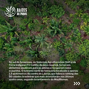 No sul do Amazonas, os Sistemas Agroflorestais (SAFs) da Terra Indígena (TI) Caititu, do povo Apurinã, fornecem alimentos saudáveis para as aldeias e recuperam solos exauridos. O extremo norte da terra está localizado a apenas 1,5 quilômetros do centro de Lábrea, que lidera o ranking das 50 cidades brasileiras que mais desmataram nos últimos quatro anos, segundo levantamento do MapBiomas.