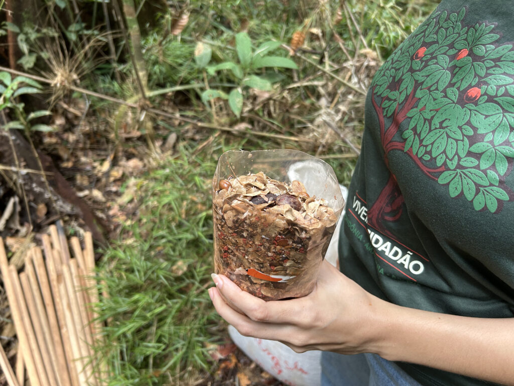 Para a presidente da Associação dos Produtores Rurais do Projeto Fundiário Nova Conquista (ASPRORCONQUISTA), Raimunda Luiza Nunes Moreira, o gesto é uma forma de cuidado que renova a esperança de uma comunidade resiliente: “Plantar árvore é cuidado mesmo. Tudo começou com a gente tendo o contato através da participação da Ecoporé na Agrotech, manifestamos o interesse e a Sheila (Noele, diretora técnica) ouviu e esperou a oportunidade. Quando ela retornou, ficamos muito felizes, e agora mais ainda com o resultado final. Aqui é fruto da enchente de 2014, éramos ribeirinhos, perdemos tudo e tivemos que recomeçar, então adquirimos a região. Então pra gente a mata tem grande importância. Só tenho que agradecer ao pessoal da Ecoporé, a todos que participaram e que isso se repita outras vezes”, celebrou.
