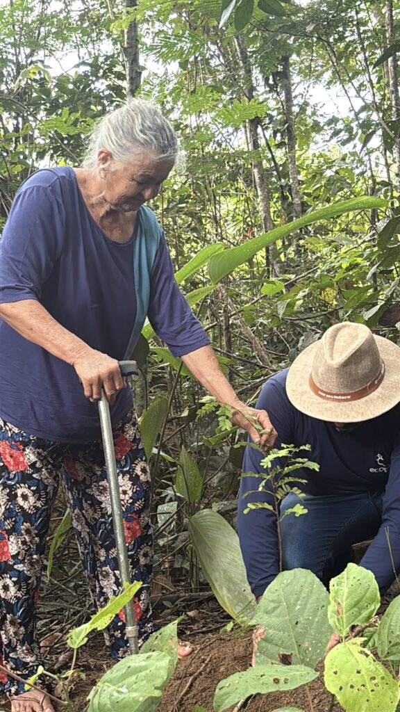 A decisão de realizar o plantio nesta data específica reforçou um dos pilares da Ecoporé: a escuta ativa. Ao atender ao pedido original dos moradores e respeitar o tempo da comunidade, a ação transformou o rigor técnico em um movimento de pertencimento. Esse elo entre a ciência e a vivência prática ganhou rosto e mãos com a senhora Maria Auxiliadora Lopes Pinheiro. Aos 81 anos, a pioneira da região foi a primeira a plantar, simbolizando que a restauração da Amazônia depende do respeito à história de quem a habita.